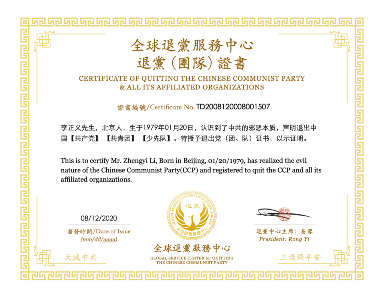 According to information from Epoch Times, nearly 365 million Chinese have quit the CCP and its affiliated organizations since the publication of Nine Commentaries on the Communist Party in 2004. Yi said one can visit www.tuidang.org to quit the CCP and obtain proof as shown below: