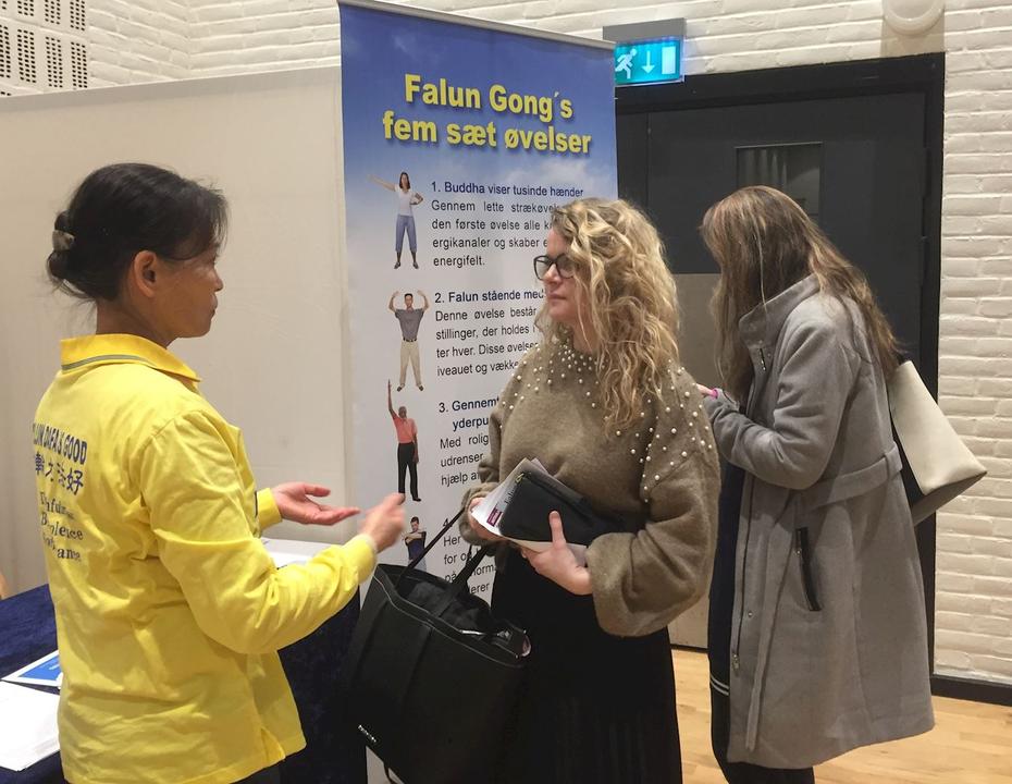 (Minghui.org) Falun Gong practitioners participated in a health expo in Odense, the third largest city in Denmark, from February 15-16, 2020. Many people took the opportunity to learn the benefits of Falun Gong.
