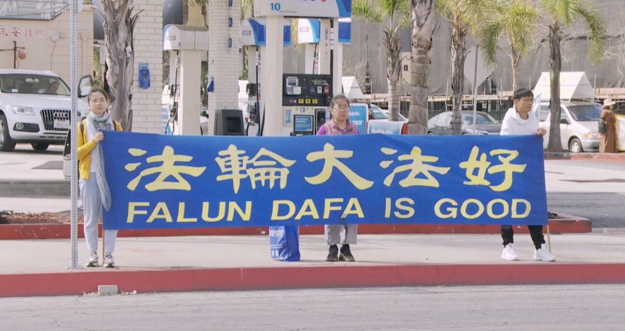 After the rally, practitioners formed a “great wall” at the intersection of Valley Boulevard and Del Mar Avenue, where many Chinese people run businesses.
