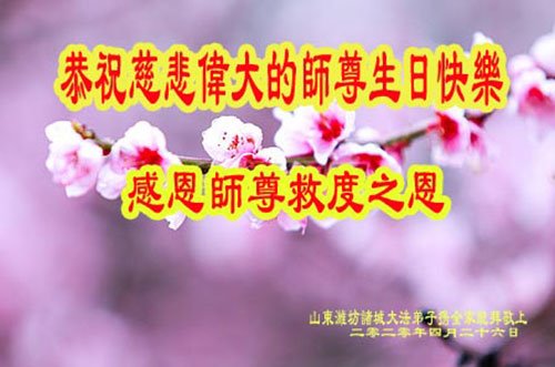 Falun Dafa Practitioners from Weifang Wish Revered Master a Happy Birthday and Celebrate World Falun Dafa Day!