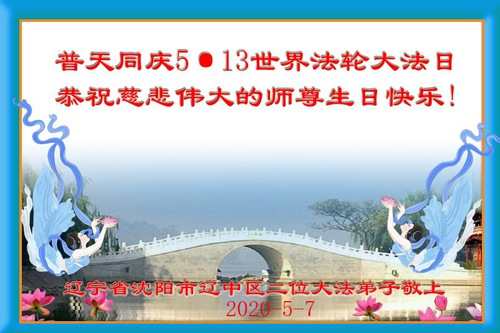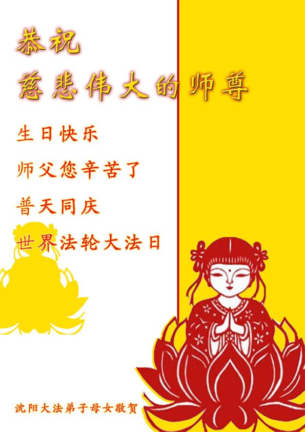 Falun Dafa Practitioners from Shenyang Wish Revered Master a Happy Birthday and Celebrate World Falun Dafa Day!
