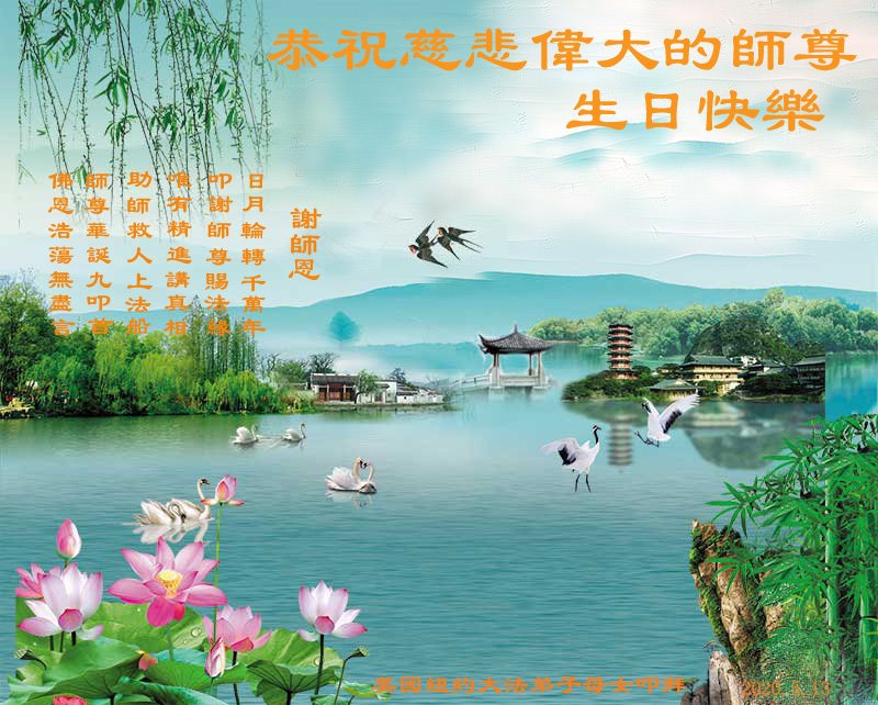 Greetings also received from a young practitioner in New York, a practitioner from Zhejiang Province of China who resides in New York on behalf of his family of six, and mother and daughter practitioners in New York.