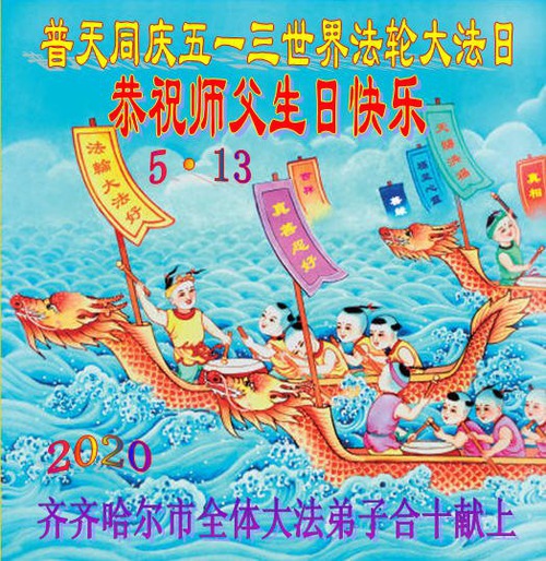 Falun Dafa Practitioners from Qiqihar City Wish Revered Master a Happy Birthday and Celebrate World Falun Dafa Day!