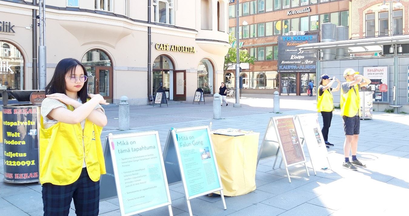(Minghui.org) Falun Gong practitioners recently held activities to introduce Falun Gong in Tampere, the main industrial center of Finland, on Saturday, June 13, 2020. Besides introducing the benefits of this mind-body cultivation practice, they also exposed the Chinese Communist Party’s (CCP) 20-year-long persecution of the practice in China and collected signatures on a petition to call for its end.