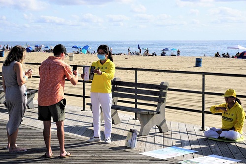 (Minghui.org) Falun Dafa practitioners held activities in two locations in New Jersey, Asbury Park and Point Pleasant Beach, on September 7. Many people strolled along the boardwalks of these popular tourist attractions and saw the practitioners' displays.
