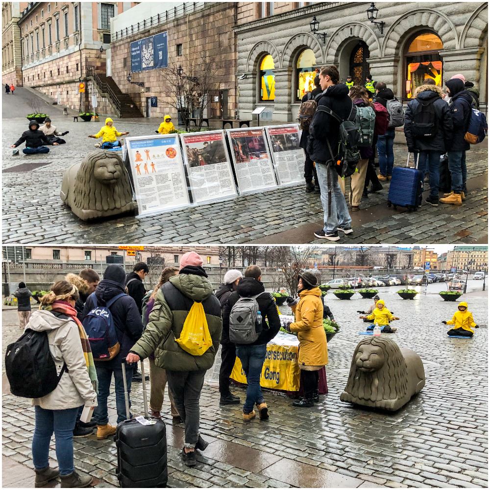 Sweden’s prevention policy regarding the coronavirus pandemic has been relatively loose. As the snow melted, people came out to enjoy the warmer weather. Some read the posters, while others watched the exercise demonstration or talked with practitioners to learn more. Many signed the petition calling for an end to the persecution.
