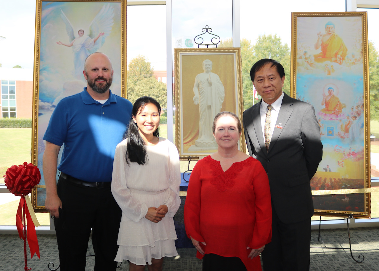 (Minghui.org) The Art of Zhen Shan Ren (Truthfulness-Compassion-Forbearance) International Exhibition can be seen at Georgia Gwinnett College (GGC) in Lawrenceville, Georgia, about an hour’s drive northeast of Atlanta, until November 19, 2021. The opening ceremony was held on October 25 in the student center.