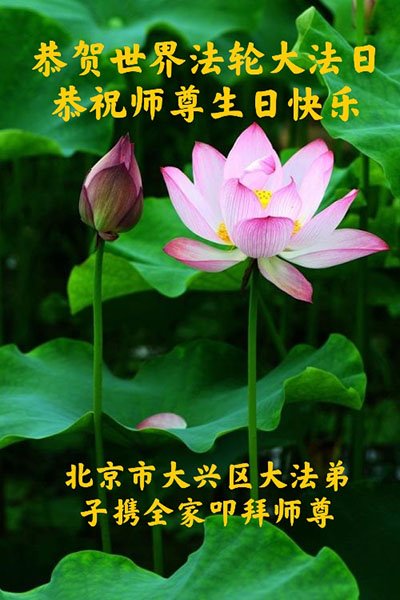 Falun Dafa Practitioners from Beijing Wish Revered Master a Happy Birthday and Celebrate World Falun Dafa Day!