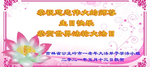 Four elderly practitioners from Yichun City, Heilongjiang Province, wished Master a happy birthday. They wrote that they will cherish the time that was extended and study the Fa better. They vowed to be diligent together, encourage each other on their cultivation paths, do the three things well, and return home hand in hand with Master.