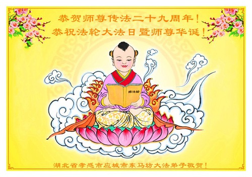 Falun Dafa Practitioners from Hubei Wish Revered Master a Happy Birthday and Celebrate World Falun Dafa Day!