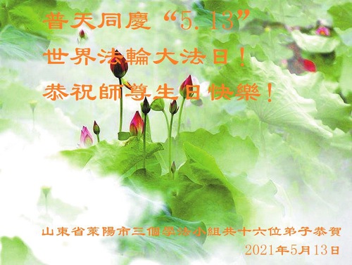 In honor of World Falun Dafa Day, May 13, Falun Dafa practitioners send their heartfelt good wishes to the Minghui website to celebrate the anniversary of this historic day and express their profound gratitude to Master Li.