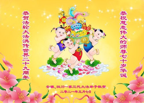 Falun Dafa Practitioners from Anhui Wish Revered Master a Happy Birthday and Celebrate World Falun Dafa Day!