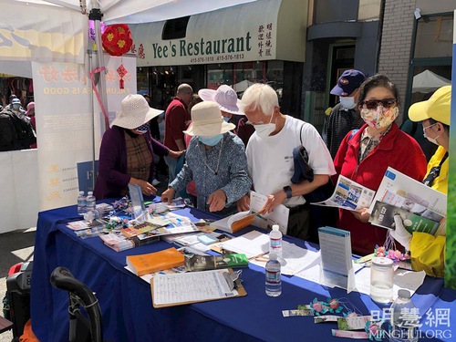 Every year before the Mid-Autumn Festival, San Francisco’s Chinatown holds a street fair, which was suspended last year due to the pandemic. Many local people saw the Falun Dafa booth and came to learn about the practice.