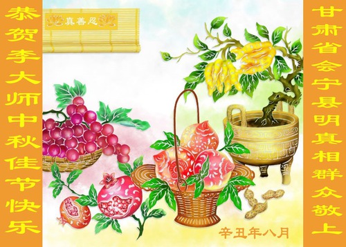 (Minghui.org) At the grand occasion of the Moon Festival, many supporters of Falun Dafa have sent their heartfelt greetings to Master Li Hongzhi, the founder of the practice, to wish him a happy holiday.