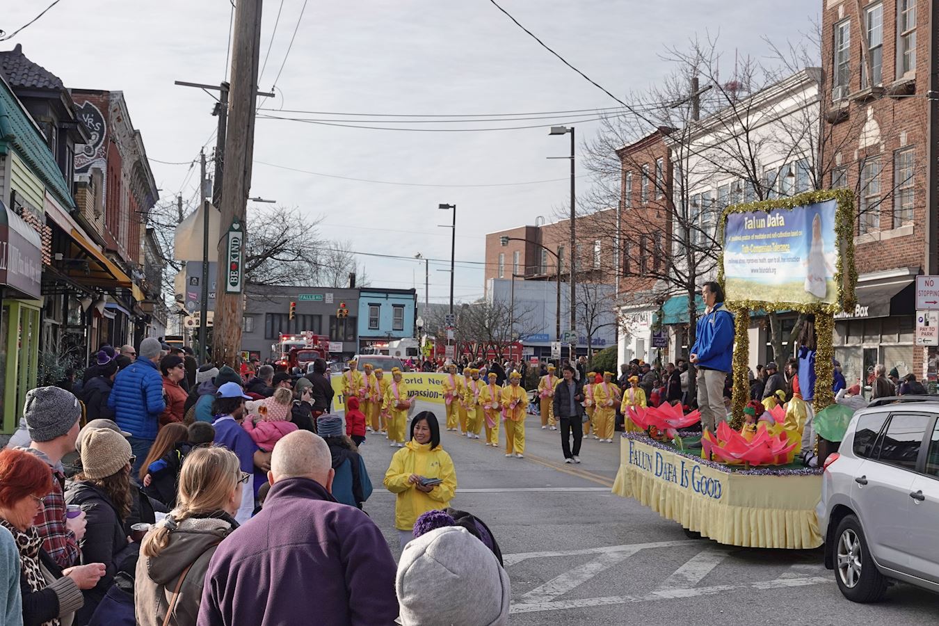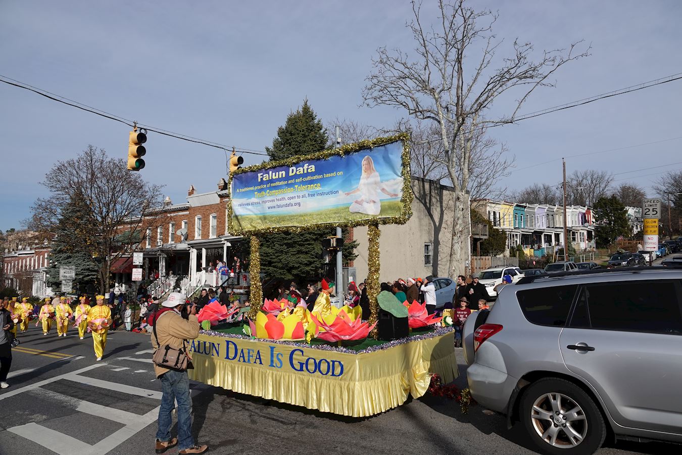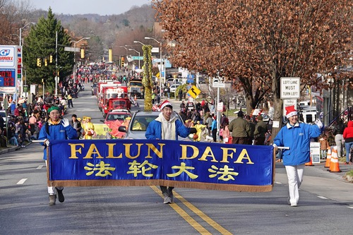 The parade is a cherished Christmas tradition in Baltimore, and Mr. Tom Kerr the Christmas parade committee chairman, has been organizing this event for over 40 years. He said, “This year, we put Falun Dafa’s entry in front because I want everyone to see Falun Dafa.”