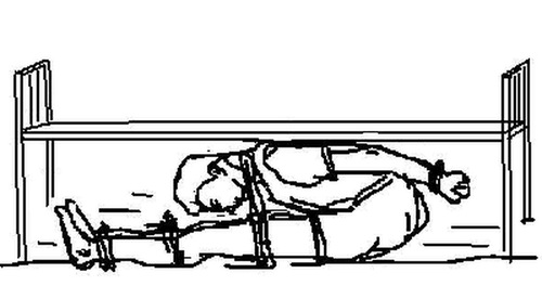They stuffed Mr. Li under the bed at night. His back almost broke. The next morning, guard Li Ji hit him more than ten times with a PVC pipe and forced him to sign a statement to renounce Falun Gong.
