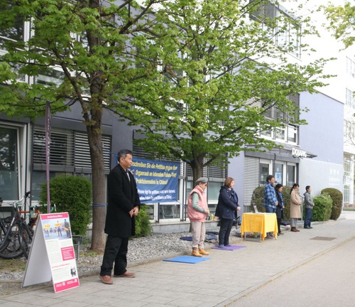 Practitioners held a peaceful protest on the street opposite the Chinese Consulate in Munich.