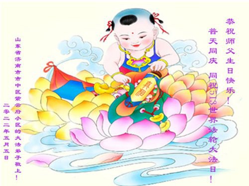 Falun Dafa Practitioners from Jinan City Celebrate World Falun Dafa Day and Respectfully Wish Master Li Hongzhi a Happy Birthday (23 Greetings)