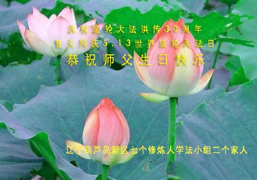 Falun Dafa Practitioners from Huludao City Celebrate World Falun Dafa Day and Respectfully Wish Master Li Hongzhi a Happy Birthday (25 Greetings)