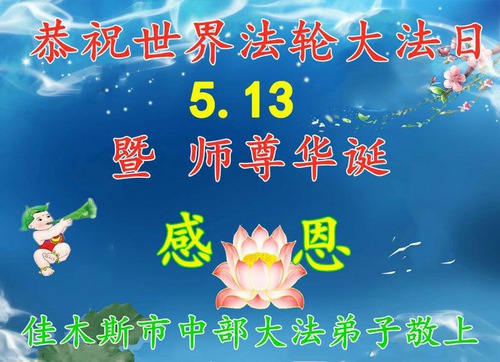 Falun Dafa Practitioners from Jiamusi City Wish Revered Master a Happy Birthday and Celebrate World Falun Dafa Day!