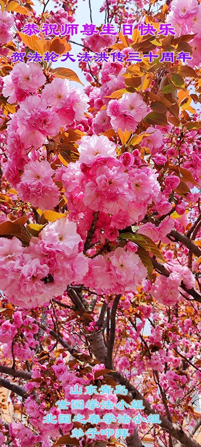 Falun Dafa Practitioners from Qingdao City Celebrate World Falun Dafa Day and Respectfully Wish Master Li Hongzhi a Happy Birthday (25 Greetings)