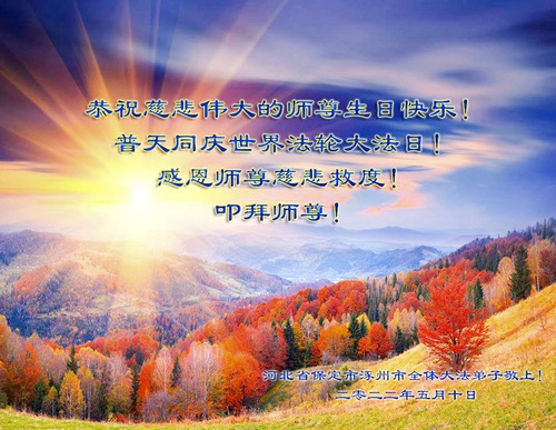 Falun Dafa Practitioners from Baoding City Celebrate World Falun Dafa Day and Respectfully Wish Master Li Hongzhi a Happy Birthday (25 Greetings)