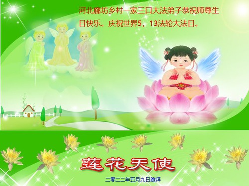 In honor of World Falun Dafa Day, May 13, Falun Dafa practitioners send their heartfelt well wishes to the Minghui website to celebrate the anniversary of this historic day and express their profound gratitude to Master Li.