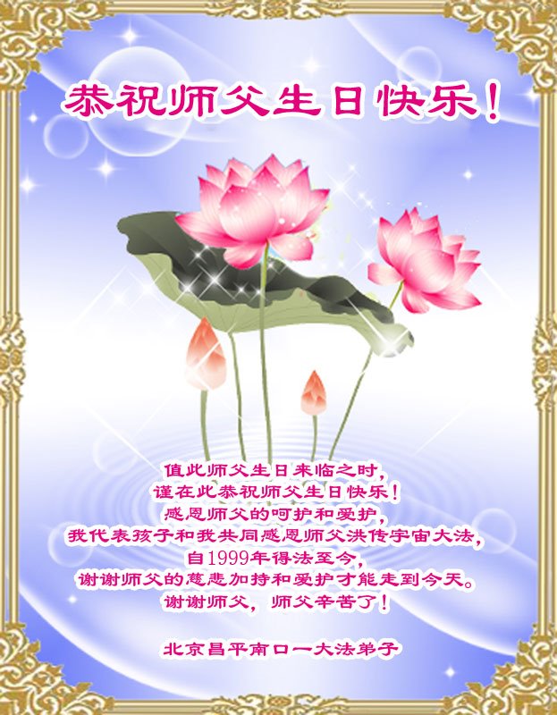 Falun Dafa Practitioners from Beijing Celebrate World Falun Dafa Day and Respectfully Wish Master Li Hongzhi a Happy Birthday (18 Greetings)