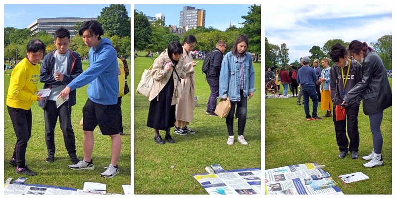 (Minghui.org) The Meadow Festival Edinburgh was held in Meadows Park after a two-year hiatus due to the pandemic on June 4 and 5, 2022. Falun Dafa practitioners from Scotland, Newcastle, and London participated in the festival. They demonstrated the exercises and distributed information about the Chinese Communist Party’s (CCP) persecution of Falun Dafa. Many people were eager to learn more about Falun Dafa and signed a petition to end the persecution.