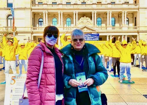 As Falun Dafa practitioners collected signatures on a petition calling for an end to the 23 years of persecution, a passerby remarked, “Your peaceful protests are very important. It helps to spread the truth in democratic countries and exert pressure on the regime to end this persecution,”