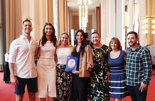 Moyce Reginato (third from right) and six relatives and friends at the Shen Yun performance in Washington, D.C., on July 17.
