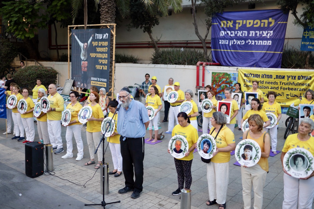 (Minghui.org) On the evening of Wednesday July 20, 2022, a rally was held in front of the Chinese Embassy in Tel Aviv to oppose the persecution of Falun Gong that has been going on in China for 23 years. A number of public figures showed their support for ending the persecution, with letters, videos, and addressing the rally in person.