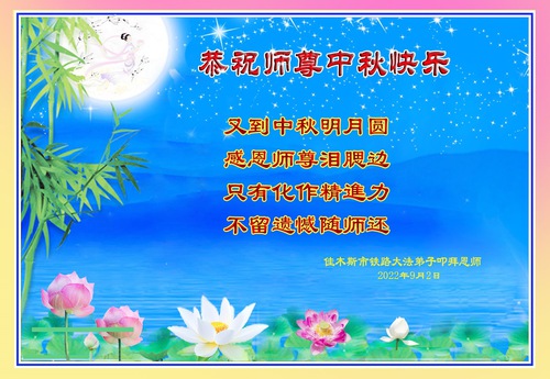 (Minghui.org) With the arrival of 2022 Mid-autumn festival, many Falun Dafa practitioners are sending their most sincere greetings to Master Li Hongzhi, the founder of the practice. They thank Master Li for teaching this great practice to the world and protecting them along their spiritual journey.