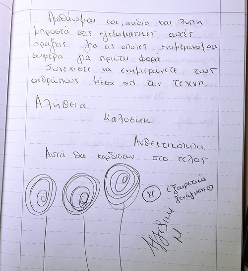 Despoina expressed her happiness while viewing the artwork.