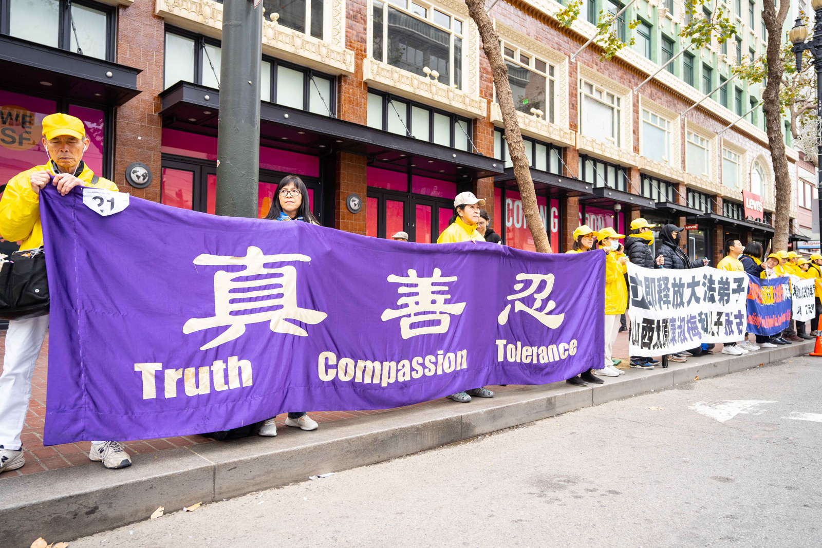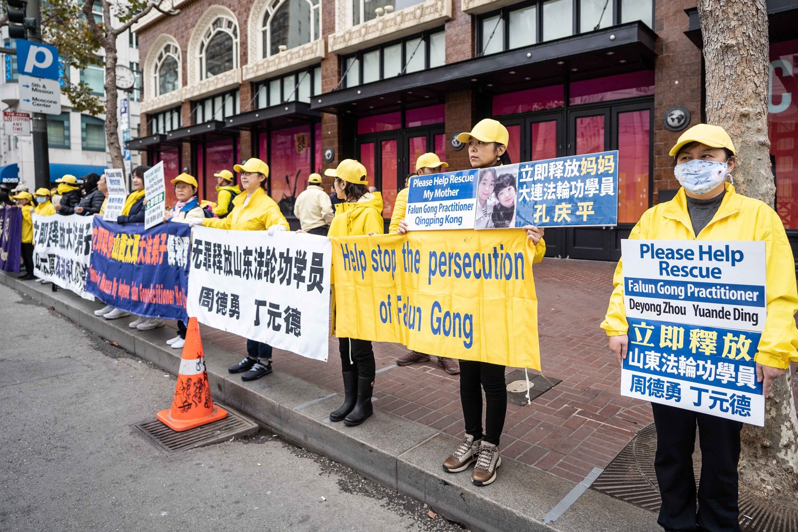 Falun Gong practitioners peacefully protest the persecution during the Asia-Pacific Economic Cooperation (APEC) Summit in San Francisco on November 15, 2023.