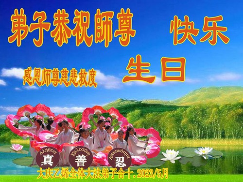 Falun Dafa Practitioners from Daqing Wish Revered Master a Happy Birthday and Celebrate World Falun Dafa Day!