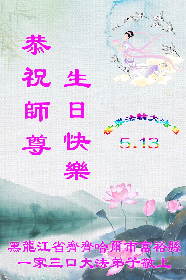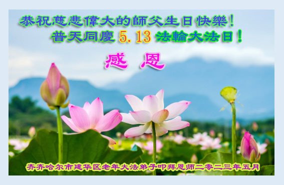 Falun Dafa Practitioners from Qiqihar City Celebrate World Falun Dafa Day and Respectfully Wish Master Li Hongzhi a Happy Birthday (18 Greetings)