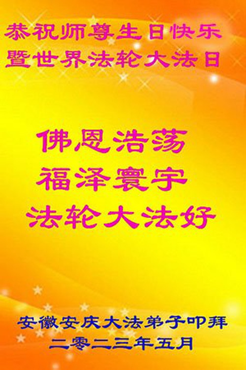 Falun Dafa Practitioners from Anhui Celebrate World Falun Dafa Day and Respectfully Wish Master Li Hongzhi a Happy Birthday (21 Greetings)