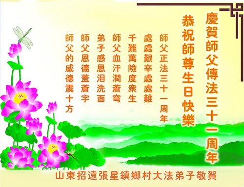 Below, we present 23 greetings from practitioners in the countryside of the following regions, celebrating the special occasion of Dafa’s public introduction: