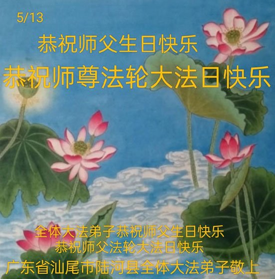 Falun Dafa Practitioners from Guangdong Province Celebrate World Falun Dafa Day and Respectfully Wish Master Li Hongzhi a Happy Birthday (25 Greetings)
