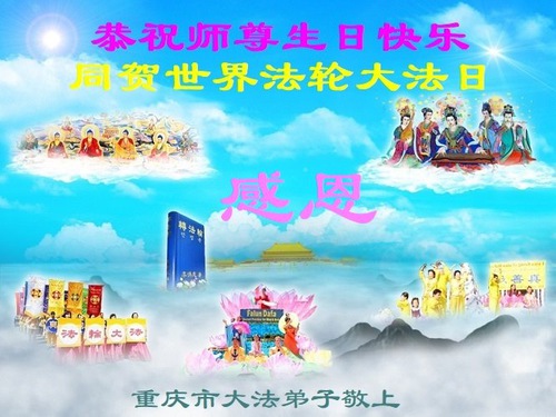 Falun Dafa Practitioners from Chongqing Celebrate World Falun Dafa Day and Respectfully Wish Master Li Hongzhi a Happy Birthday (18 Greetings)