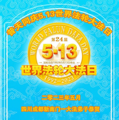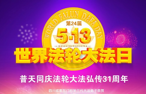 Falun Dafa Practitioners from Chengdu City Celebrate World Falun Dafa Day and Respectfully Wish Master Li Hongzhi a Happy Birthday (18 Greetings)