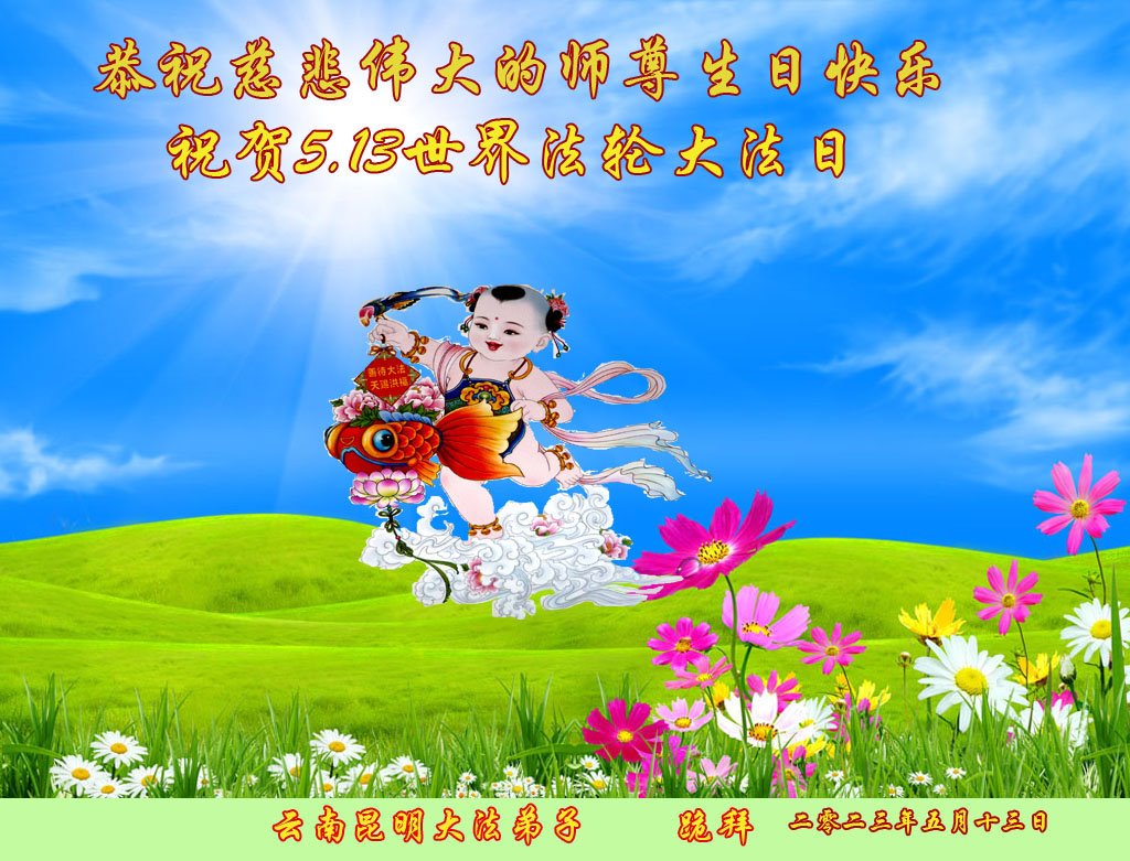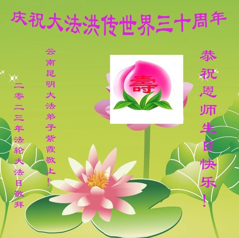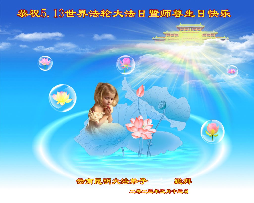 Falun Dafa Practitioners from Yunnan Province Wish Revered Master a Happy Birthday and Celebrate World Falun Dafa Day!