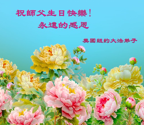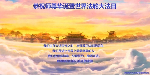 A family three practitioners from Beijing living in New York wrote, “Great and magnificent Master Happy Birthday! Happy World Falun Dafa Day! We are a family of three from Beijing and wish Master a Happy Birthday! Amid this joyous occasion of heaven and earth, we will eliminate our attachments, assimilate to Dafa, follow Master in Fa-rectification, and save more sentient beings. Thank you Master for your boundless salvation! Thank you Master!”