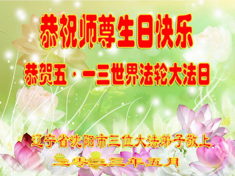 Falun Dafa Practitioners from Shenyang City Celebrate World Falun Dafa Day and Respectfully Wish Master Li Hongzhi a Happy Birthday (24 Greetings)
