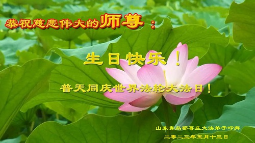 Falun Dafa Practitioners from Qingdao Celebrate World Falun Dafa Day and Respectfully Wish Master Li Hongzhi a Happy Birthday (21 Greetings)