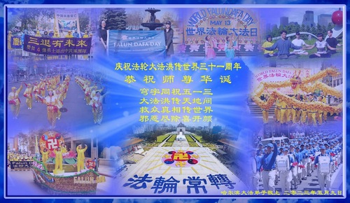 Falun Dafa Practitioners from Harbin Celebrate World Falun Dafa Day and Respectfully Wish Master Li Hongzhi a Happy Birthday (23 Greetings)