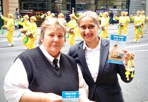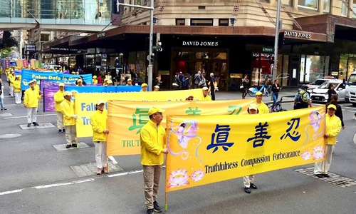 (Minghui.org) Practitioners in Sydney held a grand parade to celebrate the 24th Anniversary of World Falun Dafa Day and the 31st Anniversary of Falun Dafa’s introduction and to also wish Falun Dafa’s founder, Mr. Li Hongzhi, a happy birthday. Many spectators expressed their admiration for Falun Dafa’s principles of Truthfulness, Compassion, and Forbearance and said the parade was beautiful.