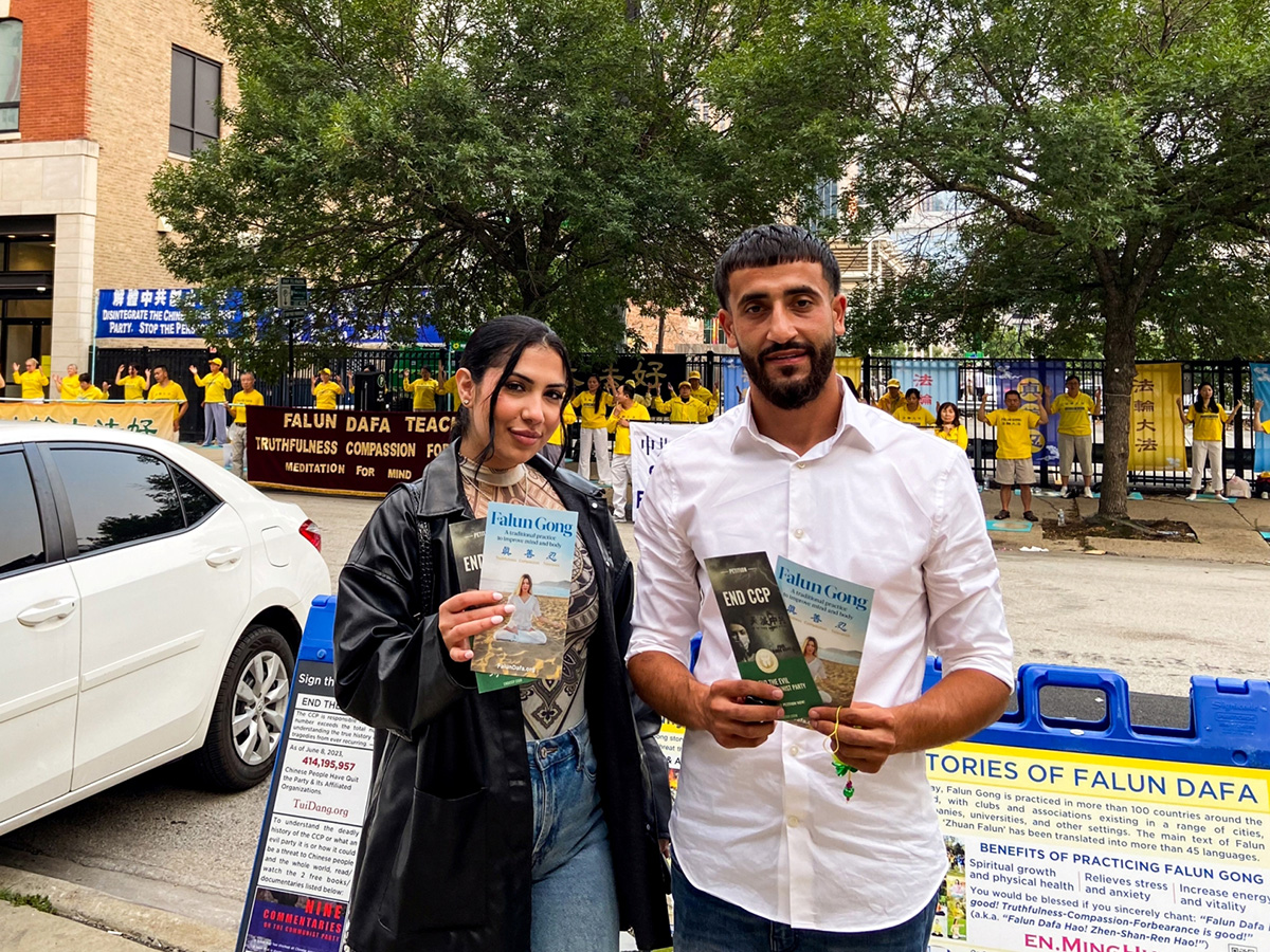 (Minghui.org) Falun Gong practitioners in Chicago held a rally in front of the Chinese Consulate on the evening of June 15, 2023. They condemned the Chinese Communist Party’s (CCP) persecution, which has been ongoing for the past 24 years. They mourned their fellow practitioners who have died as a result of being persecuted. Many locals and tourists expressed their support.