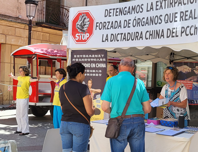 (Minghui.org) Practitioners in Soria, Spain, introduced Falun Gong and exposed the Chinese Communist Party’s (CCP) persecution on July 15, 2023. Many people were fascinated by the beautiful Falun Gong exercises and signed a petition calling to stop the persecution and for the United Nations to investigate the CCP’s organ harvesting from living practitioners.